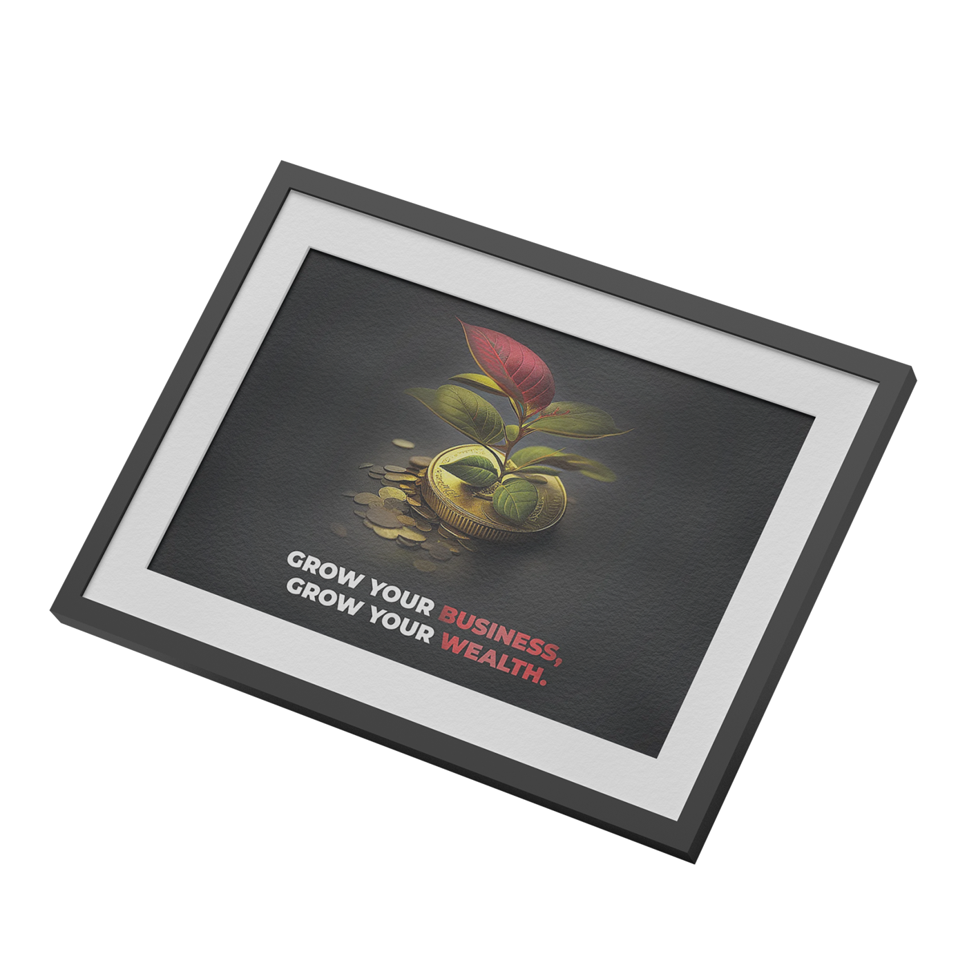 Mit dem stilvollen Poster, bedruckt mit einer Pflanze, die auf eine Münze wächst und dem Spruch „Grow your business, grow your wealth“, zeigst Du jedem Besucher, dass sich Deine Welt um Dein Business dreht!